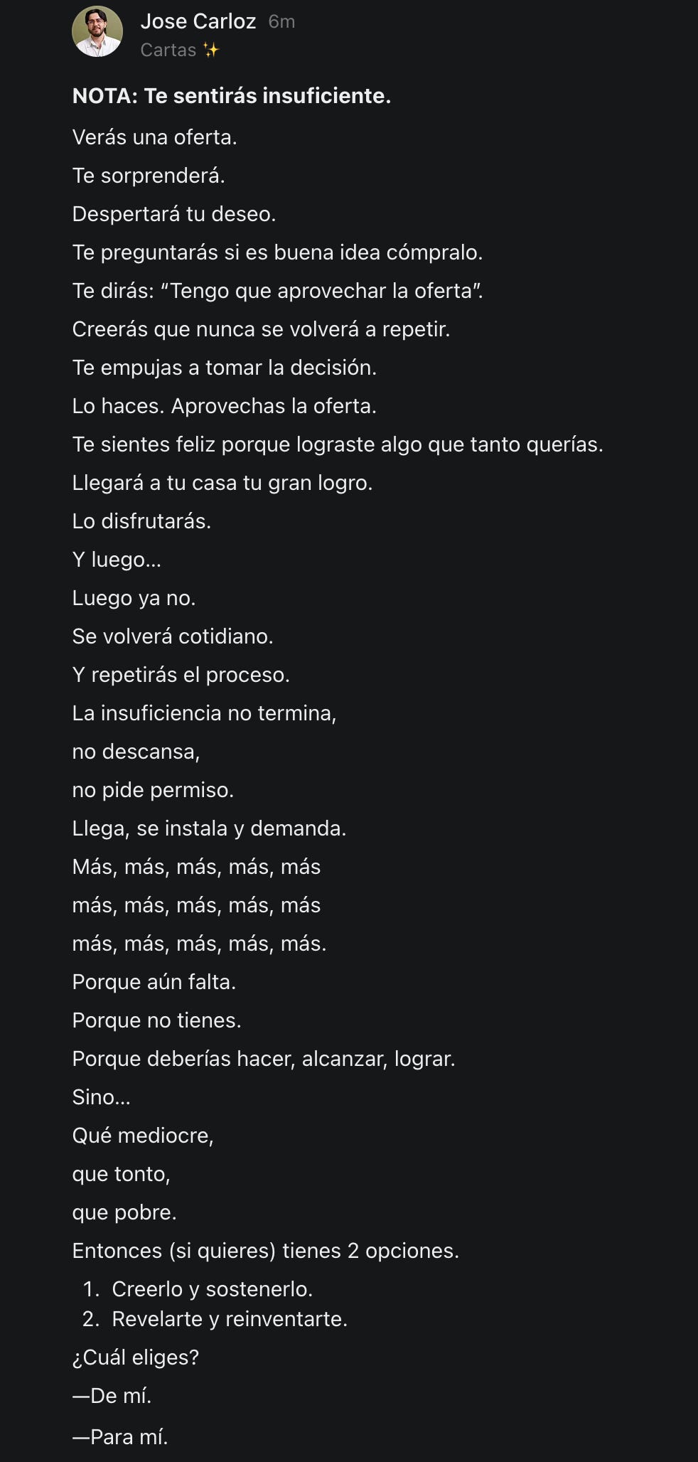¿Eliges creer y sostener la crueldad de la insuficiencia en tu piel?
